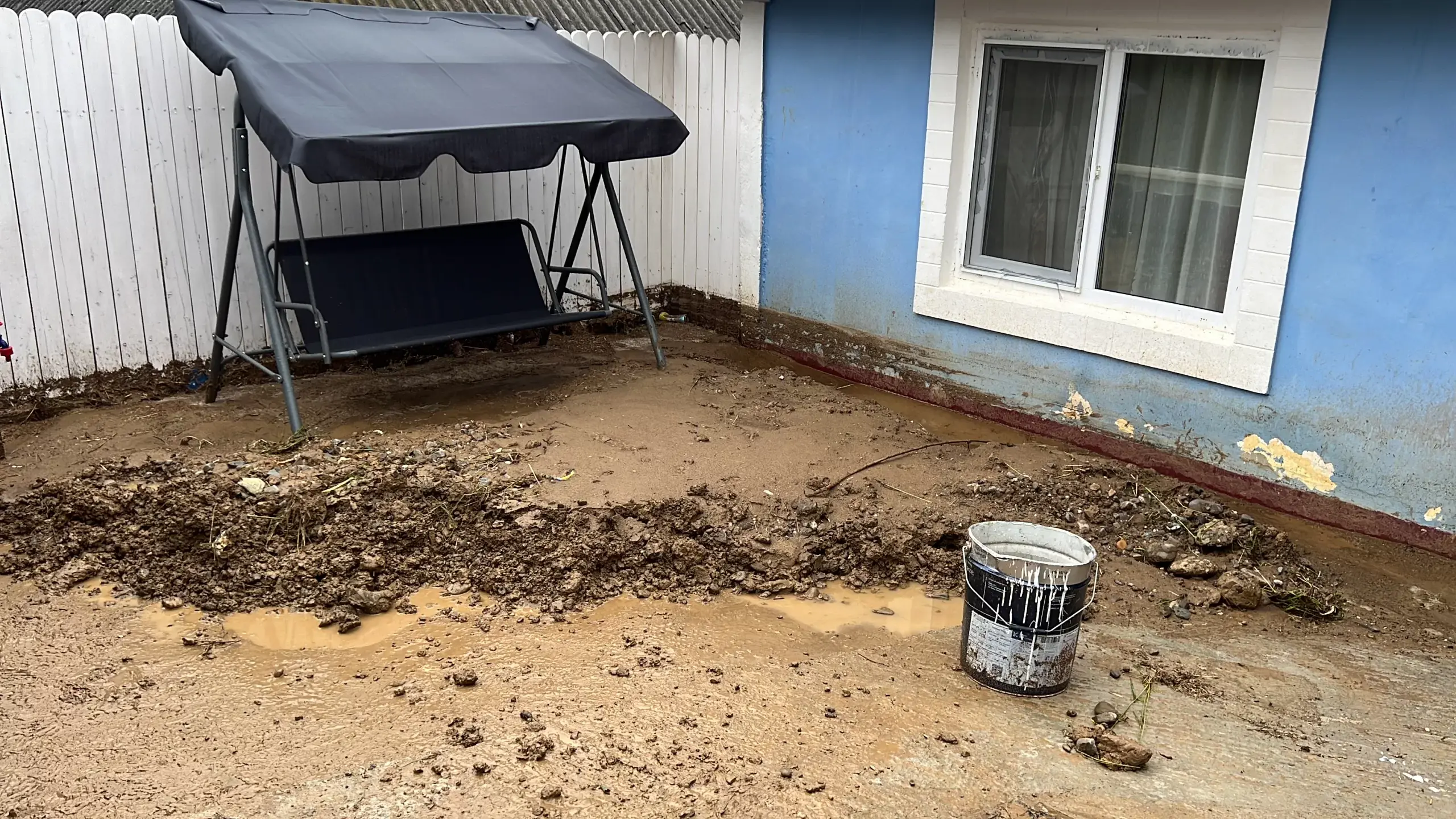 Pe imaginile postate marti seara pe retelele de socializare, se observă cum intr-o gospodarie apa mai avea putin si ajungea in casa.