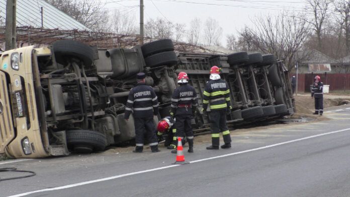 Un camion s-a răsturnat în afara carosabilului marți, 16 noiembrie, în jurul orei prânzului, în localitatea Ruginoasa. Cel mai probabil, camionul circula cu viteza pe drumul DN 28A, moment în care a intrat intr-o curbă si a pierdut controlul asupra direcției de mers.