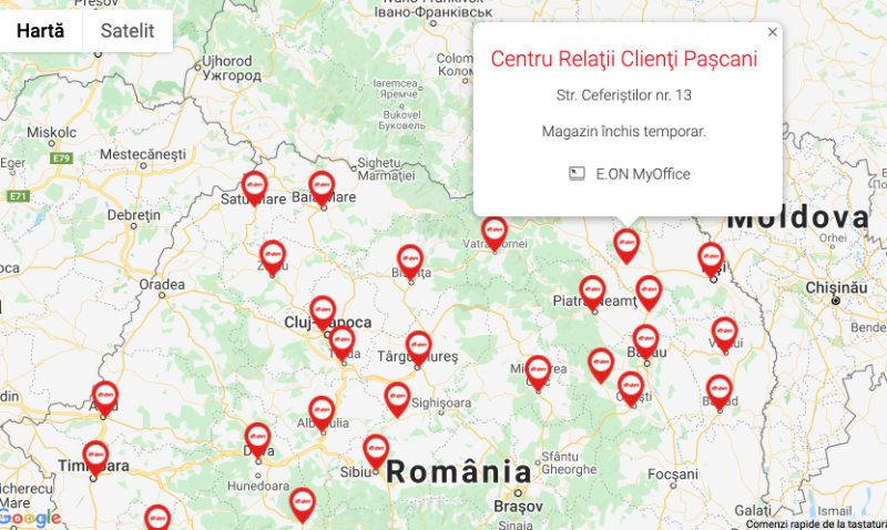 Pe site-ul E.ON, pe harta cu locatiile centrelor furnizorului, cel din Pascani apare ca „magazin inchis temporar”.