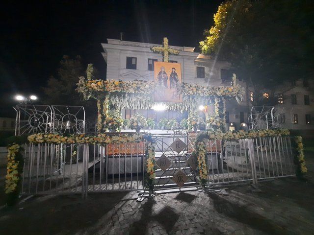 Chiar de ziua Sfintei, pe 14 octombrie, slujba Sfintei Liturghii va fi oficiată, începând cu ora 9.30, pe un podium amplasat pe Bulevardul Ștefan cel Mare și Sfânt, în dreptul altarului Catedralei Mitropolitane. În zonă vor fi amenajate culoare de acces pentru cei care vor dori să participe la slujbă și care, în număr restrâns, vor putea să intre în spații delimitate – astfel încât să nu se creeze grupuri mari de persoane și să se poată păstra distanța recomandată de autorități. Slujba va putea fi urmărită și de la distanță pe câteva ecrane de mari dimensiuni amplasate în această zonă.