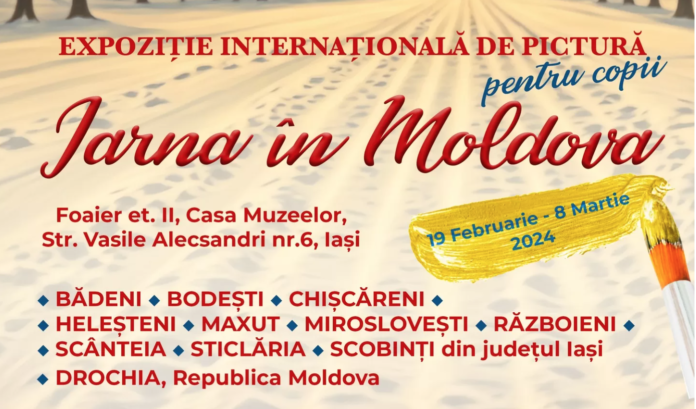 Centrul Județean al Culturii Tradiționale Iași vă invită la Expoziția internațională de pictură pentru copii „Iarna în Moldova” în perioada 19 Februarie – 8 Martie 2024. Locația: Foaier et.II, Casa Muzeelor, Str. Vasile Alecsandri nr.6, Iași.