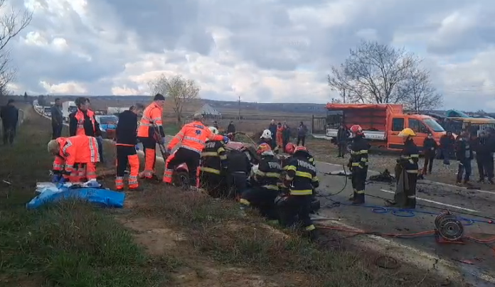 Impactul a fost extrem de violent. Partea din față a autoturismului a fost strivită pe jumătate, iar pasagerii prinși între fiarele contorsionate. La fața locului au fost chemate de urgență două ambulanțe de la substația din municipiu, dar și pompierii pentru a ajuta la descarcerare.