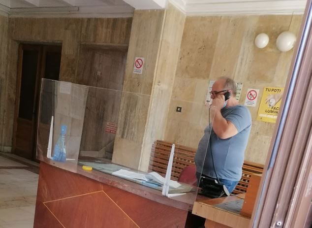 Menţionez că în acea instituție se mai petrec nereguli: tot domnul de la intrare nu poartă masca de protecţie pe gură şi nas, deși țipă la orice persoană care uită să îşi pună masca când intră, din grabă cauzată de proastă organizare a instituţiei. Acestei afirmaţii voi ataşa şi o fotografie în care se va vedea domnul de la intrare, paznic sau ce e, fără mască. Tot el ţine igienizantul de cealaltă parte a acelui paravan, în partea dansului...” se arata in reclamatie.