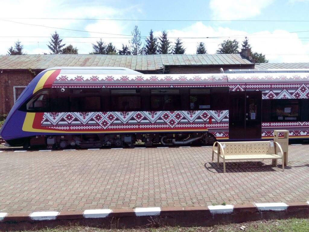 Trenul este imprimat cu modele tradiționale, iar pe partea din față are culorile drapelului românesc. Trenul este produs de Electroputere VFU Pașcani.